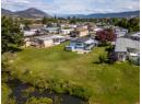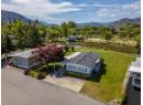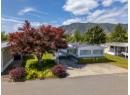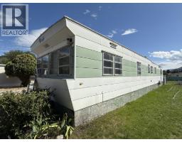 If you’re ready to downsize without compromise, here is your perfect retirement spot at Figueras Mobile Home Park. This quiet and well run MHP is highly desirable for many reasons, including its location at the end of a short street, walking distance to Skaha Lake and parks, near shops and amenities, and backing onto the peaceful Oxbows. This unit specifically has an enviable location right along the Oxbow, facing South and with a HUGE yard space you can really enjoy your outside space and have views of the lily pads and wildlife while you’re at it. The unit has been meticulously cared for and owned by the same person for a very long time. As you enter into the bright living room you’ll notice the easy care laminate flooring, spacious living room and large dining room that are open plan but separate spaces, and windows that were replaced with vinyl in 2006. The bright white kitchen has lots of cupboard and counterspace, room for a fridge and sperate freezer, and access out the side door. The laminate floors continue throughout the large second bedroom, and the main bathroom has had lots of updates and now features a huge mobility friendly walk-in shower with a seat. The spacious primary bedroom has its own two piece ensuite and a walk in closet and plenty of room for all your furniture. The unit is finished off with a huge covered deck facing East to beat the heat, the massive back yard, a back patio and large storage shed and driveway parking. Figuieras MHP is for ages 55+ (id:56537)