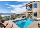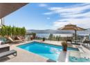 Set in one of West Kelowna’s most coveted neighbourhoods, this home blends timeless design with sweeping views of Okanagan Lake. It features 4 bedrooms plus a self-contained studio suite—ideal for extended family or guests. Inside, soaring ceilings with timber beams, and stone accents create an atmosphere both warm and sophisticated. The open-concept great room flows seamlessly to a covered lakeview deck with wood-inlay ceilings, and infrared heaters—perfect for year-round enjoyment. This kitchen showcases hardwood floors, granite countertops, a contrasting island with seating, shaker-style cabinetry, and premium Bosch and Bertazzoni appliances, all connected to the living area. The entire upper level is dedicated to the primary suite, a private sanctuary offering two walk-in closets and a spa-inspired ensuite with heated travertine floors, a soaker tub, and walk-in shower. Step onto the covered balcony to take in panoramic lake and valley vistas. The lower level is designed for entertaining, complete with a bright recreation room, custom bar, and walkout access to the pool terrace. Outdoors, relax beside the pool, soak in the hot tub, or gather around the firepit, all framed by manicured landscaping and tranquil water features. Oversized double garage, abundant storage, and a tiled dog wash. Every detail has been carefully considered, creating a residence that balances refined design, modern comfort, and the unmatched lifestyle of Lakeview Heights. (id:56537)