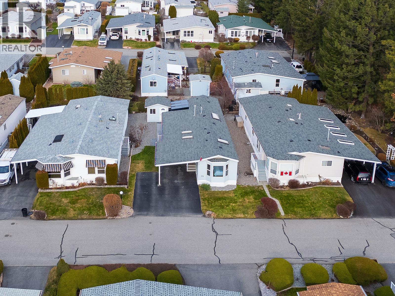 Don't miss out on viewing this meticulously and well-maintained home in Crystal Springs, West Kelowna's premier 55+ retirement community, nestled in the desirable Shannon Lake area. This home offers a fabulous layout, complete with an open floor plan, updated kitchen, bathrooms, skylights, stainless steel appliances, new flooring, and modern light fixtures. Recently repainted, the interior is brightened by large windows that frame picturesque mountain views. The large 16"" x 10 "" sunroom, with its patio doors off the living room and additional patio doors at each end, surrounded by screened windows, provides a tranquil space to enjoy nature all year-round. The primary bedroom is generously sized and includes a walk-in closet and ensuite. A second spacious bedroom and an additional four-piece bathroom are located at the opposite end of the home, ensuring privacy for guests. A dedicated laundry room features a newer front-loading washer and dryer. Outside, the beautifully landscaped yard offers a private patio area perfect for relaxation. The low-maintenance garden includes convenient drip lines, artificial turf, a spacious gazebo, and a matching storage shed. Parking includes a carport for one vehicle and an additional driveway space. There is RV/Boat parking in the park. The home is conveniently located on a no-through road adjacent to the clubhouse, which offers an extra guest suite. All city amenities are just a short drive away. Owners may have one small dog (not to exceed 12 lbs or 14"") or one cat. Gross property taxes: $1,308.30, Pad rent: $700 for new buyers, and water and sewer approximately $228 every quarter. This is a fantastic opportunity to own a piece of paradise on private land and enjoy the Okanagan lifestyle. (id:56537)