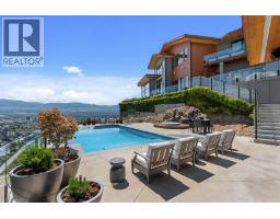 Experience elevated living in this beautifully crafted 5bdrm Rancher-style home with a walkout lower level, steps from Knox Mountain. Located in the prestigious Highpointe neighbourhood, this residence embodies the Okanagan carefree lifestyle featuring breathtaking valley, mountain & city views and resort style living. The expansive main level showcases soaring ceilings, spacious foyer & great room featuring a statement fireplace, built-in millwork and wall-to-wall windows flooding the space with the spectacular views. Enjoy a chef’s kitchen w/premium appl., granite counters, large sit-up island, beverage bar, pantry a& built-in desk. The dining area w/seating for 8-10 is highlighted by beautiful wood-beam ceiling detail & opens to a covered patio overlooking the valley. The luxe primary suite features a walk-in closet & a spa-inspired ensuite w/heated floors, soaker tub & custom tile step-in shower. An additional bdrm with cheater-ensuite +laundry completes the main level. The lower level includes a summer kitchen, large living area, 3 bdrms, gym & additional laundry - ideal for guests, family/suite potential. Fall in love w/ the outdoor living area - a resort inspired L-shaped pool with new concrete decking, builtin fire tble, new hot tub & manicured landscaping. There's even a gated area for your pup! Bonus: the oversized dbl gar with suspended slab & room below + boat parking! Designed for low-maintenance living, this residence perfectly blends comfort, luxury & lifestyle (id:56537)