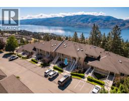 This lovely semi-detached top-floor home offers a comfortable living space in an inviting open-concept design. Freshly painted throughout, it feels bright and refreshed from the moment you step inside. Panoramic windows fill the home with natural light and showcase the gorgeous natural backdrop, while vaulted ceilings add a sense of spaciousness. The stylish kitchen features ample cabinetry, a large island, granite countertops, stainless steel appliances including a gas range, and a pantry. The luxurious primary suite boasts stunning views of Pincushion Mountain and a spa-inspired ensuite with a soaker tub, tile shower, and double vanity. Both bedrooms feature new carpet for a cozy, updated feel. Step outside to a sprawling wrap-around covered deck with pavers—ideal for dining al fresco or relaxing in the fresh air. Enjoy year-round comfort with geothermal heating and cooling (included in the strata fee), complemented by a cozy gas fireplace. Private setting with no home behind and breathtaking views. Single garage with private driveway. Pet friendly—up to two pets allowed. Minutes to Peachland’s waterfront, coffee shops, restaurants, lakeside boardwalk, and endless hiking trails right at your doorstep. Situated next to an approved 9-hole executive golf course—The Trails offers the best of Okanagan living! (id:56537)