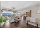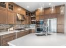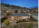 This meticulously crafted walkout rancher offers the best of Okanagan living. A wall of windows frames views of Dilworth Mountain, the city skyline, and Okanagan Lake. The open-concept main level features hardwood floors, 11’ ceilings, and a wraparound sun deck perfect for morning coffee or evening wine. A gas fireplace and dual sliding doors with phantom screens enhance the bright, open feel. The chef’s kitchen is outfitted with GE Cafe appliances, a gas stove with pot filler, quartz counters, and a two-tiered island. Soft-close white oak cabinetry, open shelving, and hidden organizers elevate the functionality. The dining space includes built-in bench seating and access to the deck and BBQ area. The primary suite showcases city views, a spa-inspired ensuite, soaker tub, glass shower, heated tile floors, dual vanities, and a walk-in closet with custom built-ins. A second bedroom or office and powder room round out the main floor. Downstairs offers a bright rec room, wet bar, theater room, two bedrooms, and a 5-piece bath. Outside, enjoy your private oasis: in-ground heated pool, hot tub and a fully fenced yard. Other features include radiant in-floor heating on the lower level, Sonos speakers throughout, Navien instant hot water, triple car garage and multi-zone irrigation. A 1-bed legal suite with private entrance adds flexibility for guests or family. Close to downtown, bus routes and Knox Mountain hiking and biking trails, this home blends comfort, luxury, and location. (id:56537)