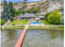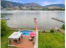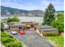 One of a kind massive nearly half Acre waterfront lot zoned R4-L Small-Scale Multi-Unit Residential - Large on exclusive Skaha Lake with approx 123' of waterfront and a dock! This west facing lot is flat, serviced with underground lines, and in the perfect location which is close enough to walk to a waterfront park, public beach, marina, dining, and just far enough away to get away from it all. The 2389 sq ft mid century modern rancher is updated and has 11' vaulted ceilings in the spacious kitchen, massive windows bringing in all the natural light you crave and panoramic lake/mountain/beach views from nearly every room. You will love the private patio courtyard in the front and covered deck with bbq station in the back. There is suite/income potential as primary bedroom has its own wet bar with plenty of space, ensuite, sitting area, separate entrance, and covered deck with lake view. There is ample parking whatever your needs on this beautiful large lot and a detached triple car garage for all your toys, it has development/subdivision potential and a foreshore permit with the potential to extend the current dock to a 120' dock! Secure, gated access, fully fenced, move in ready, perfect for any developer or those looking for a generational or long term holding property. One of the last large waterfront lots left and in one of the most desirable locations in the South Okanagan, this is your chance! (id:56537)