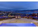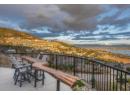 Nestled within the exclusive Vineyard View estates lies a rare gem, a meticulously crafted mini estate with mesmerizing lake and city views. No expense was spared in achieving the highest standards of quality for both the interior & exterior. Magnificent arched wooden front door gives access to the main living area which offers exquisite imported natural limestone tiles that flow seamlessly throughout, complemented by matching solid slab stair treads. The main floor has a luxurious primary suite which is designed to take full advantage of the stunning views. The exquisite kitchen features stunning titanium granite & high end appliances with custom hood fan. Great room offers an open ceiling with elegant details and natural stone gas fireplace. Floor-to-ceiling windows in both the great room and dining area provide breathtaking 180-degree views of the lake & city. Main floor also offers an office, guest powder rm & laundry facilities. The upper level offers 2 guest bedrooms, a full bath and a spacious family rm with access to an upper sundeck, all offering spectacular views of the lake and city. Oversized covered sundeck with tile floors, ceiling heaters and a built-in BBQ. Oversized triple garage with epoxy flooring with access to the mudroom with built-ins, large pantry. 6' crawl space w/stair access. Gated property offering ultimate privacy & magnificent landscaping w/multiple outdoor seating areas. Cozy fire pit, pool w/auto cover & pool bath.Tile roof, plenty of open pkg. (id:56537)