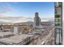 Welcome to Bertram Block – a 2024 brand-new 2 bed, 2 bath condo in the heart of downtown Kelowna with lake, city and valley views from the 10th floor. This bright southeast corner home offers 805 sq. ft. of smart design, a split bedroom layout for privacy, air conditioning, large windows and a sleek modern kitchen with quartz countertops and stainless steel appliances. Step onto your covered deck and enjoy your morning coffee with a view. Resort-style amenities include a rooftop heated pool and spacious hot tub with 360 degree views, outdoor BBQ and lounge areas, bocce ball court, community gardens, fitness centre, dog run and dog wash, secure bike room, plus multiple indoor lounges and workspaces. One secure parking stall and a dedicated storage locker are included. Live steps to the lake, waterfront paths, groceries, shopping, Pilates and some of Kelowna’s best restaurants. Lock-and-leave convenience, Mission Group quality, and an unbeatable walkable lifestyle – this is downtown living done right. (id:56537)