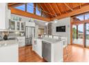 Experience refined lakefront living with unobstructed panoramic views from this stand-alone Ridge Home in the prestigious Outback on Okanagan Lake. Designed for effortless elegance, it features an airy upper level with vaulted ceilings, rich hardwood floors, and a chef-inspired kitchen with custom white cabinetry, quartz surfaces, a walk-in pantry, and an elegant island. Floor-to-ceiling glass and two view decks create seamless indoor–outdoor living. A stylish den with a built-in bar and wine fridge, plus a powder room, completes the level. The lower floor offers three generous bedrooms, including a lavish primary with a reimagined walk-in closet and ensuite with in-floor heat, plus a private patio with a hot tub & outdoor shower. The Outback Lakeside Resort is not simply another Vernon community. With multiple tennis courts, pools and hot tubs, a fitness center, two private beaches and a marina, this handsome lakefront property offers a unique lifestyle that goes beyond luxury. A marina boat slip is available separately if desired. (id:56537)