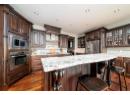 Rare Lot offering Commanding lake views and a refined, executive feel set the tone for this 5-bedroom, 4-bath single-family residence on a 0.18-acre freehold lot. Designed for both elevated everyday living and hosting at scale, the upper level features walnut hardwood floors, a striking two-sided gas fireplace, and open sight lines that extend to an upper deck with gas BBQ hookup and expansive lake views. The primary bedroom is positioned as a true retreat, with direct patio access and a spa-inspired 5-piece ensuite featuring heated floors and granite counters. A second bedroom and a heated-floor 3-piece bathroom complete the upper level, ideal for guests or home office use. The lower level is tailored for entertaining, anchored by a gas fireplace, wet bar, fridge and freezer combination, wine fridge, and a dedicated wine room. A media area with an upgraded screen and projector creates a natural gathering space, while three additional bedrooms and two bathrooms provide excellent separation for family or visitors. Walk out to the lower patio with hot and cold hose bib and gas line for seamless outdoor functionality. An insulated and heated 700+ sq.ft. three-car garage, along with parking for up to six vehicles on the driveway. A separate workshop is located beneath the garage and is accessed exclusively from the exterior along the side of the home. This home delivers presence, comfort, and flexibility in a premier West Kelowna setting. (id:56537)