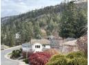 Located in the prestigious northern part of Magic Estates, this architecturally designed 4 bed 3 bath home offers gorgeous views of Okanagan Lake and the mountains. Designed to maximize natural light, it features oversized windows on all sides, bathing every room in daylight and offering stunning views from nearly every angle. With far more windows than a typical home, the design ensures a bright, open atmosphere throughout. Custom built with quality and longevity in mind, the home features a durable cement tile roof, offering fireproofing, exceptional thermal mass, and superior insulation for year-round comfort and energy efficiency. The spacious foyer leads to Douglas fir stairs with glass railings, opening to the upper level. Solid hardwood and ceramic tile floors provide timeless elegance. The living area boasts a cathedral ceiling, a gas stove on a stone feature wall, and panoramic lake and mountain views. A 180 sq. ft. covered balcony is perfect for relaxation. The kitchen offers ample counters, a gas range, and custom-built cabinetry for style and functionality. The dining room opens to a red cedar deck and tranquil low maintenance yard with mature trees. The lower level includes a bright office or studio with large windows, a spacious gym that can double as a theater, music room, or flex space, a 4th bed, a 3rd bath, and laundry. Offered for sale for the first time, this home reflects exceptional care and attention to detail, with easy access to Knox Mountain Park. (id:56537)