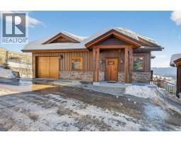 Spacious 2,948 sq. ft. ski-in/ski-out stand-alone chalet ideally positioned at the very top of the village at Big White Ski Resort, offering exceptional privacy on a rare 0.20-acre treed lot with ample parking. Enjoy breathtaking mountain views from dual balconies and unwind in the private hot tub after a day on the slopes. This classic alpine retreat showcases soaring vaulted ceilings, impressive timber construction, and a thoughtful layout with a bathroom for every bedroom. The upper level is a true showpiece, featuring a dramatic floor-to-ceiling stone fireplace anchoring the open-concept kitchen, dining, and living area—perfect for entertaining. Three upper-level bedrooms each offer their own ensuite, while an additional bedroom and bath are located on the main level. The spacious lock-off suite includes three bedrooms and a full bathroom, creating excellent flexibility for personal use or rental income. With strong short-term and medium-term rental potential, this property offers both lifestyle and investment appeal. Fully furnished with the essentials and ready for your personal touch. This is a rare opportunity to own a private mountain getaway in one of Big White’s most desirable ski-in/ski-out locations. View the virtual tour and book your private showing today. (id:56537)