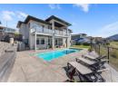 What most people envision for their dream Okanagan lifestyle; this contemporary home is designed to take full advantage of its elevated setting, with striking views of the surrounding mountains, lakes, and valley. The main floor features an open, airy layout with 11-foot ceilings, expansive windows, and direct access to a large covered deck ideal for morning coffee or maybe an evening glass of wine from a local Okanagan winery. The kitchen blends form and function with quartz countertops, stainless steel appliances, and clean-lined maple cabinetry. The primary bedroom offers a peaceful retreat with a walk-in closet and ensuite, complete with a freestanding soaker tub and custom tiled shower. An oversized second bedroom, a versatile den or third bedroom, and a well-appointed laundry room with built-in bench and storage round out the main level. Downstairs, the walk-out lower level with 10-foot ceilings provides exceptional flexibility, featuring a media room, games area, gym, wet bar, additional bedroom and spa inspired full bathroom. Outdoors, the fully automated saltwater pool with new liner and safety cover is paired with low-maintenance Synlawn turf and a custom storage shed. An oversized double garage and generous extra parking accommodate vehicles, trailers, boats, or RVs. You can be on the ski hill, hiking trails, golf course or lake all within a short drive from home. (id:56537)