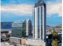 Welcome to Bertram, located in the heart of Downtown Kelowna. Recently built in 2024, this bright two-bedroom, two-bathroom outside corner unit is perched way up on the 25th floor where you can enjoy stunning unobstructed lake, city and mountain views. The 805 sq. ft. layout is thoughtfully designed with split bedrooms for privacy, air conditioning, expansive windows, and a clean modern kitchen featuring quartz countertops and stainless steel appliances. Step out onto the covered deck and enjoy a glass of wine with a beautiful view. Residents enjoy resort-style amenities including a rooftop heated pool and oversized hot tub with 360-degree views, outdoor BBQ and lounge areas, fitness centre, bocce ball court, dog run and wash station, community gardens, secure bike storage, and multiple indoor lounges and workspaces. One secure parking stall and a dedicated storage locker are included. Just steps to the lake, boardwalk, shopping, groceries, fitness/gyms, and some of Kelowna’s top restaurants, this home offers a exceptional walkable lifestyle and everything that makes Downtown Kelowna the place to be!. Hurry and Call your Realtor NOW!. (id:56537)