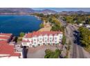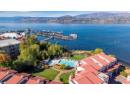 Live the ultimate Okanagan lakefront lifestyle at Lakeshore at Manteo! This luxurious 3 bedroom, 3 bathroom townhome includes your own private boat slip and lift, offering effortless access to Okanagan Lake right from your doorstep. Inside, you’ll find soaring ceilings and a bright, open concept layout with an elevated kitchen and dining area overlooking the living space below. The chef inspired kitchen features a Wolf gas range, premium appliances, an elegant recessed wine display with accent lighting, a wine fridge, and quartz countertops, blending modern elegance with everyday functionality. Expansive folding glass doors open to a private patio overlooking Rotary Beach and the lake, creating a seamless indoor outdoor living experience. Upstairs, the primary suite provides a true retreat with a private balcony overlooking the water, perfect for morning coffee or unwinding at sunset. Two additional bedrooms and a full bathroom complete the upper level. With built in speakers throughout the home and patio, every detail is designed for entertainment and relaxation. There’s also parking for up to three vehicles, a rare luxury in a waterfront community. Enjoy resort style amenities including an outdoor pool, hot tub, and lakeside fire pits, all just steps from the sand and shoreline. With direct access to Rotary Beach and Okanagan Lake in Kelowna’s coveted Lower Mission, you’re minutes from Gyro Beach, the Eldorado, and Manteo Resort. This is lakeside living at its finest. (id:56537)
