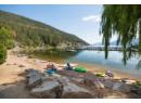 Perched above the shoreline in the exclusive Outback community, this one-of-a-kind cantilevered lakefront home is a West Coast-inspired masterpiece that blends bold architecture with the serenity of nature. Crafted into the rocky knoll, the 5 bedroom, 4 bathroom custom residence offers 3,423 sq.ft. of thoughtfully designed living space and over 1,200 sq.ft. of multilevel outdoor terraces, all with panoramic lake views. Vaulted timber ceilings, expansive windows, and organic materials create a seamless connection between indoors and out. The chef’s kitchen features brand-new Sub-zero appliances and a one-of-a-kind burl piece from California’s iconic Redwood forest, while the living room and primary suite are both framed by uninterrupted vista views of Okanagan Lake. Luxurious features include a lakeside hot tub, media room, multiple lounging decks, and a lower-level recreation room—perfect for entertaining or unwinding in privacy. 3 owned parking stalls as an added bonus. As part of The Outback’s resort-style community, enjoy access to the private marina, two sandy swimming bays, tennis courts, two pools with hot tubs, a fitness center, and a lakeside fire pit lounging area adjacent to the rare salmon spawning bay. Surrounded by protected parkland, this is a true retreat for those seeking immersive natural luxury. Enjoy direct access to scenic hiking and biking trails and take advantage of the close proximity to the neighboring resort community of Predator Ridge. (id:56537)