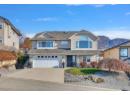 VIEWS!!! The pictures don't do it justice. This immaculate 4 bedroom, 3 full bath home features oak hardwood flooring, skylights, vaulted ceilings in the living room with a Palladian window showcasing lake and mountain views. A cozy gas fireplace anchors the space, which flows seamlessly into the in-line dining area and separate island kitchen with stainless steel fridge, induction range and a bright eating nook with direct access to the spacious partially-covered patio with pergola, complete with a gas BBQ hookup - this home is perfectly set up for effortless summer entertaining. The main level offers generous bedroom sizes, including a spacious primary suite with large window, motorized blind, walk-in closet and four-piece ensuite. A substantial laundry/mudroom adds everyday convenience - ideal for gardeners and active households. The comfortable lower level includes 2 bedrooms, comfortable family room and full bathroom - great for guests or growing families. Don't forget the over 300 sqft of unfinished storage/utility space that your family with use! With a double garage and quiet street location, you’ll love the easy access to Big White, Black Mountain Golf Club, and all nearby amenities. Major updates include: 2024 furnace, 2014, a/c and hot water tank and 2016 roof! (id:56537)
