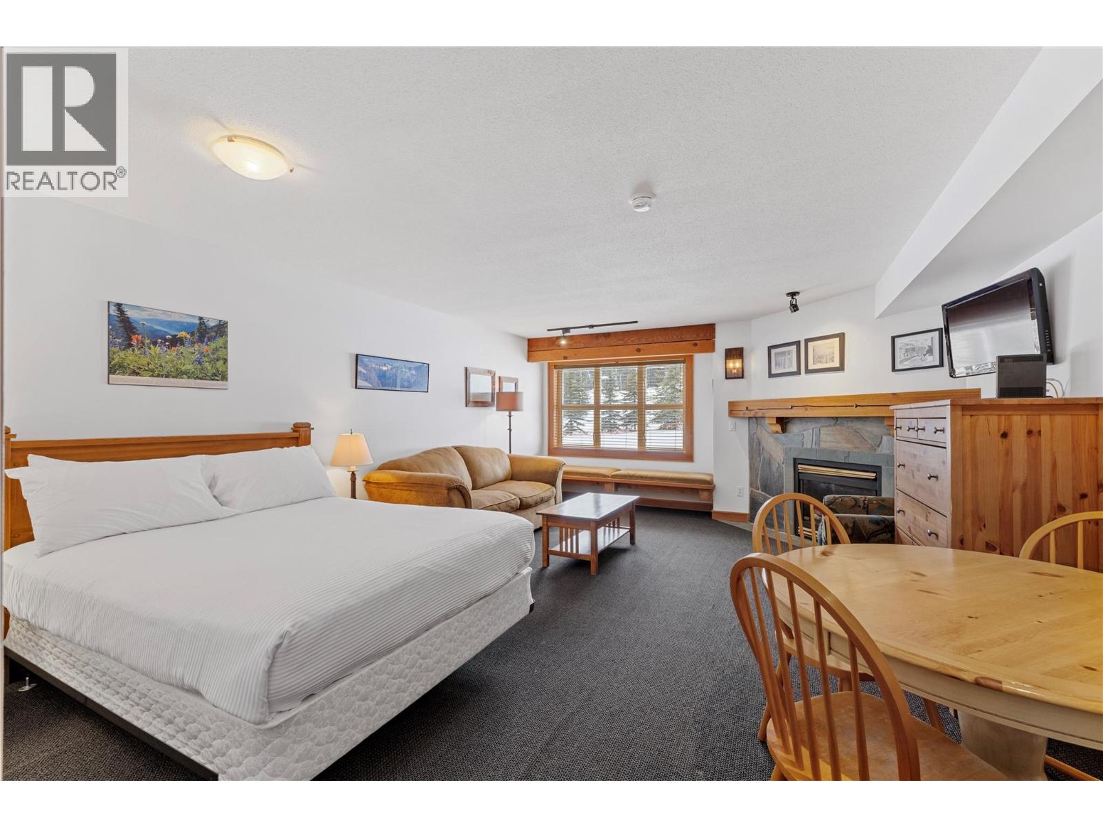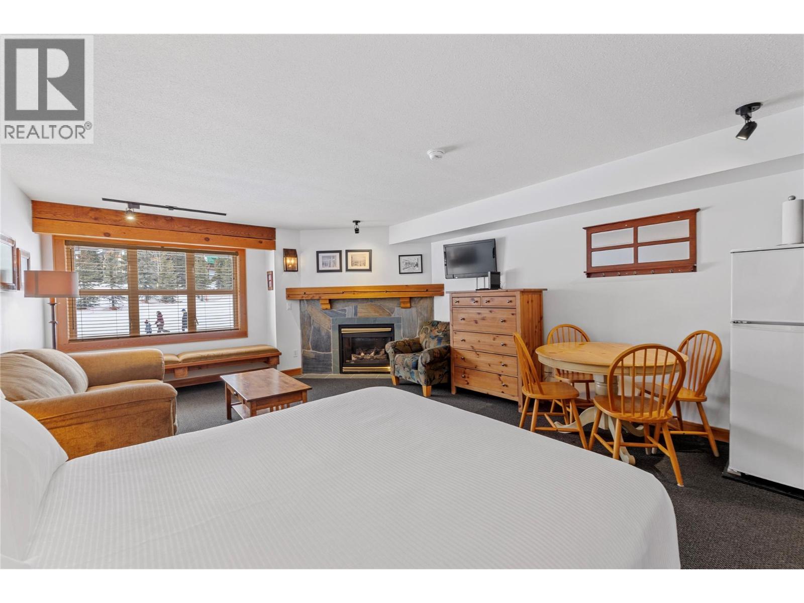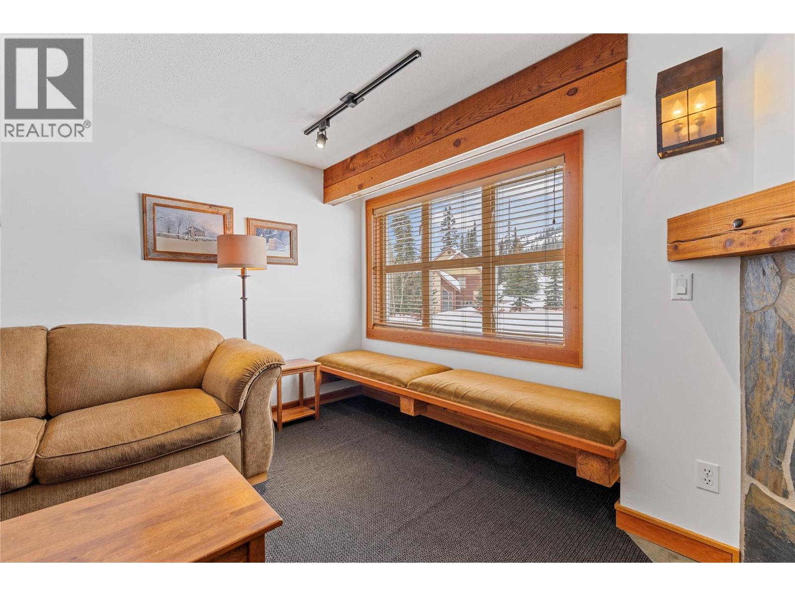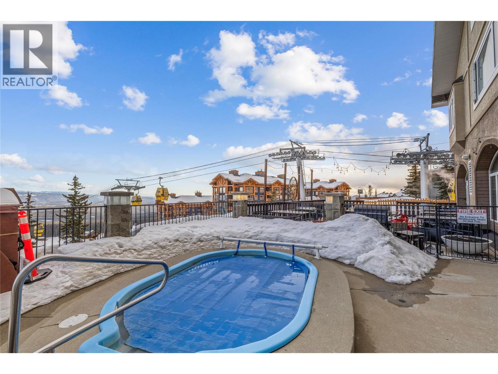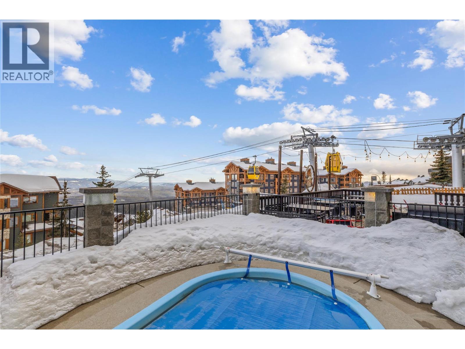 PRIME SLOPE-SIDE LIVING! This spacious 2-bedroom, 2.5-bathroom townhome combines comfort, style, and an unmatched Big White location. High-quality finishes run throughout, including hardwood floors, granite countertops in the kitchen and baths, rich wood cabinetry, stainless steel appliances, and bar seating under pendant lighting. The inviting living area features an electric fireplace framed in natural stone with custom built-ins, while the large dining space opens to your own private hot tub—perfect for unwinding after a day on the mountain. Expansive windows capture sweeping Monashee Mountain views. Upstairs, the primary suite includes a generous bedroom, 4-piece ensuite, and walk-in closet. A second bedroom, full bath, and laundry complete the upper level. The private two-car tandem garage offers additional storage. Located within 100 metres of the Bullet Chair and steps to the Village Centre, you’ll have quick access to lifts, dining, cafe, shopping, and year-round recreation—from skiing and night skiing to summer mountain biking. (id:56537)