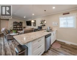 Welcome to your private oasis in the prestigious Deer Park community. This modern manufactured home offers a rare combination of contemporary design and serene living, perfectly positioned just 10 minutes from downtown Oliver and 25 minutes from Penticton. Located just across the street from the creek within the complex, this home provides easy access to nature and picturesque views of the surrounding greenery and the iconic McIntyre Bluff. As you step inside, you are greeted by an open floor plan anchored by vaulted ceilings in the living room, creating an airy and inviting atmosphere. The heart of the home is the chef-inspired kitchen, featuring a functional island with bar seating—perfect for casual mornings or entertaining guests. Tucked away nearby is a cozy dining area, where corner windows frame peaceful views. The primary suite serves as a true retreat, offering a generous closet and a private 3-piece ensuite complete with a walk-in shower. Outside, the property is designed for both relaxation and practicality. Enjoy your morning coffee on the covered front deck or retreat to the fully fenced backyard, which features high-quality vinyl fencing, a storage shed, and pet-friendly turf. Parking is a breeze with a covered carport and a spacious driveway, while the community provides additional amenities including a clubhouse, river access, and RV storage. This quiet, mature-living environment offers a tranquil lifestyle with low $55/mo fees & a peaceful neighborhood feel. (id:56537)