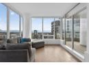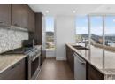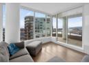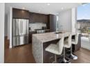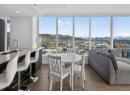 Downtown Kelowna. With a view to the east mountains and south/west overlooking Prospera Arena, the City lights, lake and bridge. The deck offers you a front row seat to view all the activities below you. Floor to ceiling windows flood the space with natural lights. Open concept is anchored by a modern kitchen, featuring quartz countertops, full height custom cabinetry and stainless appliances. 2 bedroom, 2 bathroom corner unit. Primary bedroom has 3 piece tiled walk-in shower and a spacious walk-in closet. Room off entry adds practical storage or office. Ownership gives you access to 2 pools, hot tubs, fitness center, yoga, steam room, pickleball courts, car wash, & Pilates studio, outdoor BBQ, fire pits, guest suites. Front door concierge service. Separate storage locker on floor 2. Parking is on 1st floor, accommodates a large truck. Downtown living doesn't get any better than this. Leave your car and walk to the restaurants, cultural districts, boardwalk, and the beaches on Lake Okanagan Lake. (id:56537)