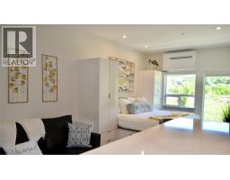 Discover your perfect retreat at Vita. This stylish, modern design studio offers a unique blend of privacy and convenience, making it an ideal choice for full-time living, short term rentals or a charming pied-a-terre in the picturesque Okanagan. Just steps from the stunning Okanagan Lake beaches, allowing you to enjoy lakefront leisure anytime. This studio comes fully furnished - with a luxurious king bed, ensuring ultimate comfort from day one. A fully equipped kitchen with modern appliances and ample counter space for meal preparation. The unit includes air conditioning for year-round comfort and an in-unit laundry setup, plus an additional larger machine on the same floor. Enjoy breathtaking valley views from your own personal outdoor space for hosting or relaxing. Vita boasts a range of amenities including a well-equipped gym, a tennis/pickleball court and a refreshing outdoor pool—perfect for unwinding after a day of work, golf, or wine touring. Additionally, there is a storage locker located across the hall for your skis, paddle boards, bikes, or golf clubs. Vita also offers complimentary EV charging stations on-site for owners or guests. This exceptional studio at Vita offers both relaxation and recreation in a sought-after location. Contact your local real estate agent today to explore all that Vita has to offer and make this dream property your own. (id:56537)