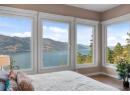 Lakeview residence in North Clifton Estates designed for seamless indoor-outdoor living, this home captures panoramic views of Okanagan Lake, the mountains, and the valley. Manicured front gardens and a fenced backyard with stone pathways, raised beds, and tranquil water features create a private, polished setting. Inside, the living room showcases soaring ceilings, a feature wall with a linear gas fireplace, while expansive windows with power blinds frame uninterrupted lake views in an open-concept layout that flows from kitchen to dining. The chef’s kitchen impresses with a large granite island, two-tone soft-close cabinetry, Wolf gas range, Sub-Zero fridge/freezer and wine fridge, Miele wall ovens & dishwasher, and a full butler’s pantry with add’l prep space and views. The covered upper deck is an entertainer’s retreat with frameless glass railing, heater, ceiling fan, power sunscreen, and gas hookup, extending outdoor living through every season. The primary suite has panoramic views, a custom walk-in closet, and a spa-inspired ensuite with heated floors, freestanding tub, and tiled walk-in shower. The lower level features a spacious rec room with fireplace, 2 add’l bdrms, 2 baths, and a versatile bonus room for media, gym, or office. A covered patio connects to the rec room and hot tub with powered rooftop gazebo. A large walkout room beneath the garage, adds flexibility and the two-car garage with epoxy floors and additional driveway parking completes the home. (id:56537)
