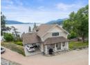 Welcome to your dream lakeview retreat! This well-maintained family home is perfectly perched to capture breathtaking expansive views of the lake from all three levels, with large south-facing windows and multiple decks to soak in the scenery. Whether you're sipping coffee on the upper balcony or enjoying a sunset by the fire pit, the views are truly unmatched. Inside, the layout is both functional and flexible. The main floor features an open-concept kitchen and dining area, seamlessly flowing into a cozy living room with a wood fireplace and walkout to a spacious deck. A full 3-piece bathroom and bedroom complete the main level. Upstairs, the oversized primary suite offers a true retreat with a sitting area, skylit 4-piece ensuite with soaker tub, and private balcony. A second bedroom with 2-piece ensuite is located across the hall. The fully finished walk-out lower level includes two additional bedrooms, a full bath, kitchen and laundry—ideal for an in-law suite or mortgage helper.Outside, enjoy ample parking including RV/boat space, a carport, mature fruit trees, a shed for garden tools, and a welcoming neighbourhood vibe. You’re just 5 minutes to the public beach and boat launch and only 10 minutes to Fintry Park. This is lake life at its best, flexible, scenic, and full of possibility. (id:56537)