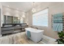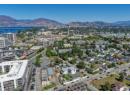 Architectural brilliance meets urban convenience in this 6-bedroom, 7-bath residence, including a 2-bedroom, 2-bath legal suite w/ Air BnB income potential. Just steps from Gyro Beach & Pandosy Village, the home pairs striking design with everyday functionality. Inside, soaring ceilings & floor-to-ceiling windows create an airy space. A floating staircase anchors the open living space, offering a dramatic fireplace feature, wide-plank hardwood, & exposed steel beam detail make bold statements. The chef’s kitchen is outfitted w/ sleek push-touch cabinetry, quartz surfaces, premium JennAir appliances, & a wine display, with seamless flow to the dining & family rooms. The main-level primary retreat offers a wall-sized custom wardrobe & spa-like ensuite w/ heated floors, a soaker tub, & large shower. Upstairs, find 3 additional bedrooms, 2 baths, a glass-railed office nook, & 2 covered decks w/ mountain & peek-a-boo lake views. Designed for entertaining, the backyard offers a private courtyard patio w/ covered outdoor kitchen, speakers, & pool heater rough-in, plus a manicured fenced lawn with room for a pool. The legal suite impresses with its own island kitchen, living area, laundry, & expansive deck. Add'l features include a heated triple garage w/ epoxy floors, ample exterior guest parking, landscape lighting, & secure perimeter fencing. This residence seamlessly blends modern architecture w/ the walkable Okanagan lifestyle in one of the trendiest neighbourhoods. (id:56537)