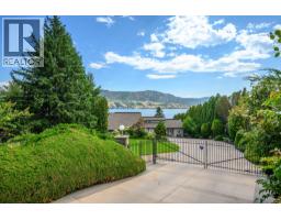 Truly one of the most unique offerings on Okanagan Lake, this property features the rare combination of level entry and a flat lakeside lot—an exceptional and highly sought-after find along this shoreline. This estate offers 338 ft of pristine frontage on 2 titles, plus a coveted 240’ x 140’ foreshore lease, creating an unmatched waterfront setting just minutes from downtown Vernon. Set behind gates on a private parcel, this 5-bedroom, 3-bath character home blends timeless charm with thoughtful modern updates. The upper level showcases vaulted ceilings, floor-to-ceiling windows, a spacious rec room with fireplace, four beautifully renovated bedrooms, a cedar sauna and a full bath. At lake level, a bright open-concept kitchen, living, and dining area is framed by expansive windows capturing breathtaking water views, with seamless walkout access to the waterfront. This level also includes the primary bedroom, an additional bedroom, and 2 full baths. Outdoor living shines year-round with a hot tub, gas fire pit, covered seating area, oversized floating private dock with two boat lifts, walk-out beach, and sprawling lawn—perfect for entertaining, family weddings, or unforgettable reunions. Additional highlights include 4 gas fireplaces, an oversized double garage, workshop, and abundant storage. Only 45 minutes to SilverStar Mountain Resort, 30 minutes to Kelowna International Airport, and 20 minutes to Predator Ridge Resort—this is Okanagan living at its finest. (id:56537)
