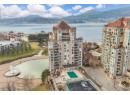 Iconic waterfront living in the heart of Kelowna’s Cultural District! Perfectly positioned on the waterfront, this beautiful two bedroom two bathroom lakeview condo offers a front-row seat to the very best of downtown Kelowna living. Inside, expansive walls of windows flood the home with natural light and frame views of Okanagan Lake, the bridge, the boardwalk, and the iconic Dolphins fountain below. The thoughtfully designed floor plan blends comfort and function, with a generous living area, ideal for both everyday living and entertaining. The kitchen features bar-style seating, under-cabinet lighting, ample cabinetry, and abundant counter space, seamlessly opening to the dining area where lake and city views elevate every meal. Step outside to not one, but two private patios, perfect for morning coffee, sunset dinners, or a glass of Okanagan wine as the city lights come alive. The primary bedroom is a true retreat, complete with a walk-in closet and a private ensuite, while the second bedroom and full bathroom provide flexibility for guests, a home office, or family. The Dolphins offers resort-style amenities including an outdoor pool, hot tub, tennis court, fitness centre, and immaculately maintained grounds. Right outside your doorstep you’ll find Kelowna’s Cultural District, with world-class dining, galleries, theatres, boutique shopping, and microbreweries just steps away. Walk to the beach, marina, yacht club, boardwalk, festivals, and waterfront parks, or simply enjoy the energy of downtown from your own balcony. Whether you’re seeking a full-time residence, a high-end urban retreat, or a premier waterfront investment, this is lakefront living at its most iconic, where culture, convenience, and the Okanagan lifestyle meet. (id:56537)
