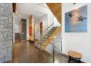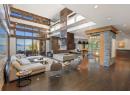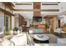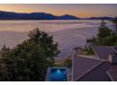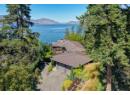 An architectural showpiece set behind gates on Okanagan Lake, this extraordinary lakeshore estate offers exceptional privacy and a truly elevated waterfront lifestyle. A long, winding drive framed by mature cedars and curated gardens reveals striking architecture — a refined blend of stone, cedar and metal roofing — positioned to capture panoramic lake, bridge and mountain views. With 112 ft of shoreline, the setting is as impressive as the residence itself. Inside, cork plank flooring, exposed beams and soaring ceilings create warmth and texture against dramatic steel and stone accents. Walls of glass open the great room to the pool terrace, creating seamless indoor-outdoor living. A glass-walled, temperature-controlled wine room adds a stunning focal point. The chef’s kitchen is designed for serious entertaining with a leathered granite island, quartz counters, Thermador induction cooktop, Gaggenau appliances, dual Miele dishwashers and a commercial-grade walk-in cooler. The lakeview primary retreat feels suspended above the water, complete with a spa-inspired ensuite and custom walk-in closets. Additional guest beds, a theatre and a rec room with full bar ensure effortless hosting. Outdoors, enjoy an expansive pool deck, outdoor kitchen and shower, stepping down to manicured lawn, private beach and a private dock with 12,500 lb lift. A separate 2-bed guest house with gym, sauna and steam room, plus 2 garages totaling 1,485 sq ft, complete this rare offering. (id:56537)