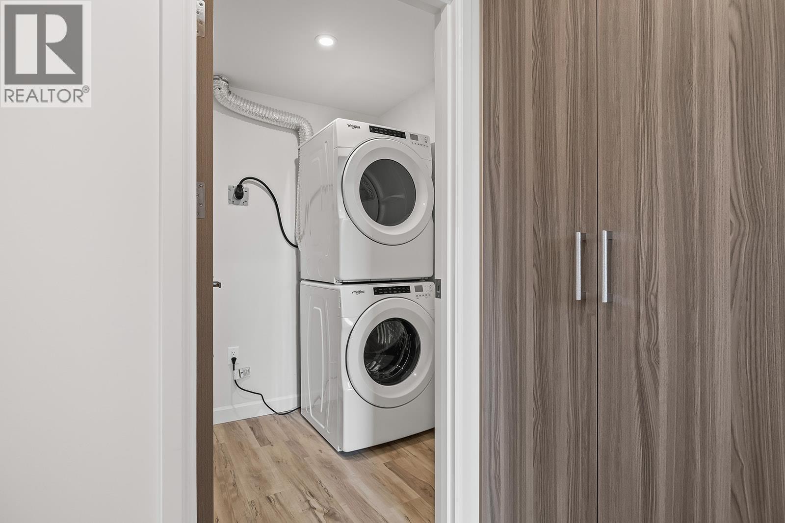 Brand New. Move-In Ready. And anything but ordinary. Welcome to Eminence at Knox Mountain. This 2-bed, 2-bath home offers approx. 949 sqft of smart, sophisticated living designed for people who appreciate clean lines & thoughtful details. Inside, 9-ft ceilings and expansive windows create a bright, open feel. The Sky colour palette interior blends light wood tones, striking black accents & glass balcony features. The kitchen is a standout with premium 2-tone cabinetry, quartz countertops, stainless steel appliances, a gas range & a unique wine storage feature. An in-suite laundry room adds convenience, while designer LED lighting, a statement entry door, solid-core interior doors, & custom shelving & closet solutions complete the polished finish. You’ll also enjoy underground parking with your own private bike cage. The building’s common rooftop viewing terrace gives all new meaning to Kelowna’s Patio Season. Pet-friendly & Nature at your doorstep with direct access to Knox Mountain’s hiking & biking trails. Downtown Kelowna and Glenmore are minutes away. Buy new & save. Eligible buyers may qualify for the Property Transfer Tax exemption & the upcoming 1st time home buyer GST exemption & remaining homes include up to $100k in built-in savings from original pricing. If you want a designer condo you’ll genuinely love coming home to, this one checks all the boxes. Move-In Ready 1-Bed to 2-Bed + Den homes available. Sales Centre open Sat & Sun 12-4pm or by appointment. (id:56537)