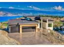 Brand new and net-zero ready, this architectural showpiece by Gelcor is set in Summerland’s coveted Hunters Hill community - an area exempt from the foreign buyer ban. With panoramic 180 views of Okanagan Lake, vineyards, & mountains, the home blends design excellence with forward-thinking innovation. Inside, wide-plank oak floors, soaring ceilings, & walls of glass frame the lake beyond. The kitchen is a culinary masterpiece with professional Bosch appliances, granite surfaces, walk in pantry, & a dramatic island with an adjacent pass through that opens to a deck w bar seating & built-in speakers. The main level hosts a dining room, living area with tiled feature wall & fireplace, & a serene primary suite w a spa-like, award-nominated, ensuite w heated floors, freestanding tub, & lake views. The lower level extends the lifestyle: a rec room with nano doors to the covered patio, a quartzite waterfall edge wet bar, glass-walled wine cellar, theatre, gym, & guest suites, all capturing lakefront vistas. Lower level flooring is heated excluding the wine room & gym. Outdoors, xeriscape landscaping frames a generous side yard, a pool permit is in place. Upgrades include 3 zone indoor/outdoor speaker system, triple-glazed windows, sprinkler system, EV-ready 3-car garage w epoxy floors, & suspended slab construction. A rare opportunity to own a design-forward home that redefines Okanagan living. (id:56537)