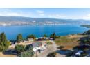 Perched to capture beautiful lake views, this extensively renovated rancher-style home with a detached garage offers the perfect blend of comfort, efficiency, and relaxed Okanagan living. The bright open-concept main level features warm white oak cabinetry, quartz countertops, and a thoughtfully designed kitchen complete with a gas range and double-drawer dishwasher, generous prep space, and excellent storage—ideal for both everyday living and entertaining. The main living area is warm and inviting with a gas fireplace, beautiful engineered hardwood flooring, and seamless access to an expansive view deck—the perfect place to take in sweeping lake and valley vistas. Year-round comfort is provided by efficient heat pumps with air conditioning and cozy in-floor heating in select areas. Downstairs, the walk-out daylight basement offers a well-designed 2 bedroom, 1 bathroom layout, providing comfortable and private space for visiting family or guests. The lower level opens to a covered seating area with lake views, creating a peaceful spot to relax or entertain, with a nearby fire pit area ideal for evening gatherings. The detached garage adds excellent flexibility and includes a convenient 2-piece bathroom, along with access to an expansive workshop located beneath the garage footprint—perfect for hobbies, projects, or additional storage. The landscaped yard is designed for easy maintenance. With thoughtful renovations, versatile living spaces, and stunning lake views from multiple outdoor areas, this home offers comfortable, low-maintenance living in a truly special setting. (id:56537)