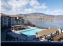 Rare find - Lake & Pool view, Updated 1 bedroom Sauvignon, top floor suite in Walnut Beach Resort. This Condo is NOT part of the rental pool and allows full-time residence. Come and go as you please or stay full-time. Sorry NO RENTALS, No PETS. This unit has been updated over the last 5 years to include paint, new laminate and carpet, quartz counter tops and faucets, built in dishwasher, fridge with bottom freezer, modern furniture - including bar stools, dining table and chairs, living room table and chairs, king bed which lifts for more storage and deck furniture. A bright and inviting suite with stunning views. You can feel like you are on vacation every day. This well managed Resort keeps the common areas fresh and updated. Osoyoos has milder winters than a lot of Canada and offers nearby ski hills, walking/ hiking and bike paths, golf courses, world class wineries, distilleries, parks and recreation, Osoyoos Lake is the warmest in Canada. The Resort includes a year round outdoor heated swimming pool, 2 hot tubs, fitness centre, kitchen and beverage, dining room, and outdoor dining area, conference room, private beach front with seating and moorage if you have a boat. Strata Fees $767.20/month include: power, contingency, resort management, landscaping, strata insurance. (id:56537)