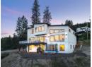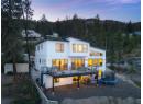 Perched in a private setting just 7 minutes from the city centre, this exceptional 6-bedroom, 5-bathroom home offers breathtaking 180-degree panoramic views of the lake and downtown. Thoughtfully designed for both families and multi-generational living, the layout blends function with elevated style. The upper level features an ideal 4-bedroom configuration, including a stunning primary retreat designed to capture the view from every angle. Complete with a spa-inspired ensuite, freestanding tub, and picture window perfectly positioned for both sunrise and city lights. Convenient upper-level laundry adds to the home’s family-friendly design. On the main level, soaring two-storey windows flood the living space with natural light, while a striking micro-cement feature wall anchors the living room, showcasing a modern water vapor fireplace that delivers the ambiance of real flames with a clean, safe design. The chef-inspired kitchen is complemented by a full pantry with additional counter space and cabinetry, and a high-end appliance package that elevates everyday living. The lower level offers in-floor radiant heat and incredible flexibility with a 5th bedroom, full bathroom, and spacious rec room, along with direct access to the fully self-contained 1-bedroom legal suite, ideal for extended family or rental income. Like new, solar ready and offering the advantage of no GST, this home delivers luxury, privacy, and convenience in one of the area’s most desirable settings. (id:56537)