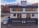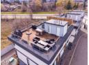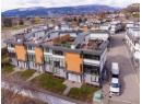 Best location in the development. This 3-bedroom end-unit townhome sits in the quietest, most private position, elevated and set apart with greenspace out front and no direct views in from other units. Southeast exposure brings in excellent natural light, with views from both the living room and primary bedroom. The open main floor features floor-to-ceiling windows, power blinds in the living room, and clean, modern finishes throughout. The kitchen is well laid out with a full stainless appliance package including gas range and steam dryer, plus upgraded window coverings already in place. End-unit design adds four extra windows, creating a brighter, more open feel than interior units. Upstairs, the 588 sq.ft. rooftop patio offers a true outdoor living space with city and mountain views, plus a more functional layout unique to end units. Upgrades include anextended garage built to fit full-size trucks, hands-free skirted toilets, and a newer high-end Eco Spa hot tub. Visitor parking is directly across, with additional room in front of the garage for easier access and maneuvering. Built with geothermal heating and cooling, LED lighting, and quality insulation for efficient year-round comfort. Central location with quick access to downtown Kelowna, Knox Mountain, breweries, restaurants, shops, and the waterfront. One dog or one cat allowed. Award-winning development with 3 Gold Tommie Awards and 2 Silver. (id:56537)