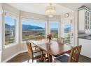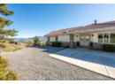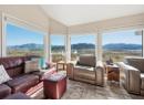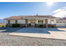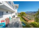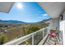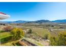 Set on a 0.63-acre panoramic view parcel overlooking the vineyard-lined countryside between Oliver and Osoyoos, this custom-built home offers nearly 4,000 sq.ft. with a walk-out basement and exceptional versatility. Featuring 5 bedrooms and 3 bathrooms, including 3 bedrooms and 2 baths on the main level, the layout is designed for both scale and everyday function. A striking double-door entry with custom stained glass leads into expansive living areas with vaulted ceilings on the main floor, and a well-appointed kitchen with granite countertops and walk-in pantry. The dining and living spaces are oriented to capture sweeping, unobstructed Okanagan Valley views, enhanced by remote-controlled blinds. The primary suite offers a private retreat with double-door entry, sitting area, skylights, heated floors, 5-piece ensuite, and walk-in closet. The lower level includes a media/games room with ceiling-mounted projector and cold storage. Mechanical updates include heat pump (2025), furnace (2016), hot water tank (2021), water softener (2024), RO system (2022), and HRV. Exterior features cement tile roof, energy-efficient windows, underground irrigation, flagstone patio, and new sod lawn. Ample parking for 5 vehicles by way of an attached 3-bay garage *+plus+* a 2-bay 220V-wired workshop, RV hookups. This home has immaculate maintenance records as an amazingly cared for one owner home. Come experience this home and the view for yourself- you wont regret it! (id:56537)