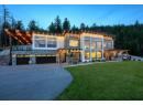 Step into this European inspired residence, situated on a remarkable 2.89 acre lot. This secure, gated estate offers privacy within the prestigious McKinley Landing community. Completed in 2020, this custom masterpiece offers breathtaking, unobstructed panoramic views of Okanagan Lake and spans nearly 5,000 square feet with six bedrooms and five bathrooms. At the heart of the home, a dramatic double height great room showcases floor to ceiling windows and a grand stone fireplace. The elevated kitchen boasts sleek custom cabinetry, premium integrated appliances, two islands and separate prep kitchen and is open to the dining room. An office, powder room, and theatre room finish off this level creating thoughtful spaces for relaxing and entertaining. The upper level features a sprawling primary suite complete with a private patio, a coffee bar, a spa like ensuite where a copper clawfoot tub overlooks the lake. The luxurious walk in closet and dressing room Is a dream, with custom cabinetry and centre island. The upper levels features three additional bedrooms and a sitting room. Step outside to enjoy sun soaked days by the pool and hot tub, or unwind in the sauna while taking in the sweeping lake views. The meticulously landscaped grounds feature a timber framed pergola and several lounging areas, offering exceptional privacy and tranquility. Additional highlights include home automation system, solar panels , 3 car garage, and over 40 acres of surrounding parkland. This is a unique opportunity to own a gated estate in one of Kelowna’s most sought after settings. (id:56537)