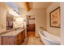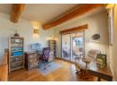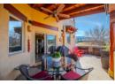ONE OF PENTICTON’S MOST DISTINCTIVE HOMES. This rare adobe style townhome blends timeless Southwestern architecture with thoughtful modern updates. Refined, grounded, and truly one of a kind. From the moment you enter, craftsmanship stands out: exposed wood beams, hand-finished stucco, and solid wood doors, while the fireplace anchors the main living space with warmth and character. Natural textures and earth toned finishes create a calm, intentional feel unlike anything else on the market. Off the living area, the expansive upper patio extends your space with covered and open areas, a natural gas hookup, and room for dining, lounging with mountain views. Upstairs, the primary suite is a retreat with an ensuite and clawfoot tub. A flexible sitting or office area opens onto a covered terrace for your own private escape. A powder room on the main level adds convenience, while the entry level includes a flexible office or guest room with a 3 piece bath and storage under the stairs. European style windows for easy cleaning. Practical features include a heat pump, in-wall vacuum, and oversized 500 sqft double garage with built in workspace, plus driveway parking. Exterior and interior logs consistently maintained. Located in a well positioned, self managed strata with low maintenance landscaping, this home is walking distance to Okanagan Lake, downtown Penticton, the golf course, community fitness centre, and local amenities. Homes like this don’t come up often. Architecturally rich, meticulously maintained, and impossible to replicate. (id:56537)