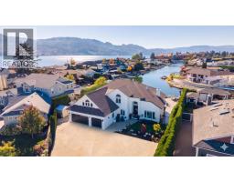 Live your Okanagan Lakefront dream with 128' of flat pristine beachfront on nearly .5 of an acre. Enjoy your licensed dock with 2 lifts, a boathouse for lake toys, and a lush irrigated yard with maple,pine,fruit trees, and beautiful flowers. The Chef's kitchen offers a Thermador fridge, Induction cooktop, wine fridge, and inspiring lake views, perfect for entertaining, or quiet mornings. The main floor boasts Inside,bamboo flooring,large windows, and a seamless flow between laundry room, recently renovated bedroom and bathroom, den with elegant wainscotting, sunken living room and dining area. A European sauna upstairs offers you your own private spa, while the Primary bedroom is a perfect sanctuary with stunning lake views, an ensuite that makes one feel spoiled, and large patio deck so one can capture the lake and mountain views. A newer furnace(2022),and AC ensure year round comfort. An oversized 2-auto garage with workspace area, and plenty of driveway parking for guests. From morning paddles to sunset gathering ,embrace lakeside living at its finest on Lake Okanagan. (id:56537)