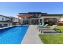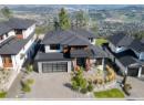Experience modern luxury and natural beauty in this stunning 4,616 square foot custom home in Wilden, one of Kelowna’s most sought after communities. Thoughtfully designed by Rykon Construction, it features soaring 18 foot ceilings, heated floors in key areas, tri-slider doors leading to an outdoor oasis, and oversized glulam posts and beams with a pergola. The lavish kitchen boasts an eight foot by five foot island, double fridge and freezer, induction cooktop, double wall ovens, and separate prep kitchen. The kitchen flows to the dining room and living room that features two story ceilings and floor-to-ceiling windows to showcase the unobstructed east facing valley views. This level also includes two offices, laundry room, and bathroom. Upstairs is the luxurious primary suite with views and spa like ensuite, along with two more bedrooms, each with an ensuite. The basement includes a theater room with a 100 inch projector, game room, wet bar, guest bedroom, bathroom, and fitness room. Nothing has been spared in this home as smart home automation controls lighting, blinds, security, and more. The oversized 700 square feet two car garage is designed with an EV charger, built-in workbench, cabinets, and room for bikes and all your gear to embrace the Okanagan lifestyle. Outside, enjoy an eight foot deep 32 foot by 16 foot salt water pool, hot tub, covered patio, and tiered lot maximizing light and privacy. Located near Wilden’s extensive trail network and minutes from downtown, this home offers a blend of luxury, functionality, and lifestyle. (id:56537)