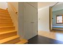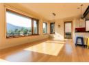 This contemporary Kootenay 3 floor house in Rossland is built to passive energy specs. Expertly planned to be a healthy, low carbon footprint building with solar photovoltaic 2kV, battery ready and roughed in for generator back up, radiant heating cooling system, triple pane windows, exterior window shades, advanced HRV, radon monitoring, and low maintenance, low VOC buildings materials. The heart of the home is a bright, open-concept area with a wide entry, sleek kitchen, pantry, and open living area. Large windows frame mountain views and flood the space with natural light. A large primary suite, dedicated office, bedroom/flex room, two full bathrooms, a large garage, workshop and gear space and a dog wash area complete the residence. High ceilings, wood accents, and modern fixtures create a soothing blend of efficient comfort and modern style throughout. It is even set up with aging-in-place considerations cleverly hidden for future use. (id:56537)