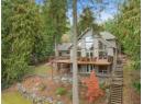 2611 Duncan Road, Blind Bay. The moment you wind down the private driveway and gaze at this chalet-style home, you know it has a feeling of character. Located in the wonderful, quiet, and peaceful neighborhood of McArthur Heights, this oversized .65-acre lot and large home have so much to offer. Double attached garage for your vehicles and a detached workshop for the hobbyist. This home features 5 beds and 4 baths plus a den. Large open downstairs entertaining room and pool table room. The main floor features an open A-frame plan with high ceilings and large picture windows to fully appreciate the wonderful nature of the backyard views and even a peek-a-boo lake view. A grand deck spans the main level plus wraps around one side of the home with stairs going down into the yard. Low-maintenance yard with a lawn area to enjoy the privacy and maybe do a bit of gardening. Inside the home, you can feel the warmth of the heated concrete floors. The kitchen is open plan with a large island and features updated appliances, including a wall oven and microwave Silestone counters, natural gas range, and lots of cabinet space. The 3-sided natural gas fireplace on the main floor gives both the living area and dining area spaces that great ambience. The second floor is a dedicated master suite and ensuite and walk-in closet. With additional bedrooms and bath on the main and downstairs, there is lots of room for family and guests with plenty of privacy and space. Check out the 3D tour. (id:56537)