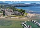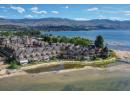 Experience true waterfront living at Mission Shores in this light-filled 3-bedroom, 4-bath townhome set along one of Kelowna’s most sought-after stretches of Lake Okanagan. Blending a refined beach-house feel with front-row views, this spacious residence offers bright, open-concept living and seamless indoor–outdoor flow. The main level features wide-plank hardwood floors, high ceilings, and a kitchen with a large quartz peninsula island, shaker cabinetry, and premium appliances. The dining and living areas open through French doors to a generous lakeview deck with gas BBQ hookup perfect for sunset gatherings. A private main-floor bedroom with ensuite is ideal for guests. Upstairs, the lakeview primary retreat impresses with vaulted ceilings, walk-in closet, 5-piece ensuite, and access to a private deck overlooking the shoreline. A second upper-level bedroom offers vaulted ceilings, walk-in closet, and its own 3-piece ensuite. A bright landing with a large skylight fills the home with natural light. Additional features include two parking spots, two private entrances, one directly from the garage, ample storage, gated courtyard entry, and in-unit laundry. A dedicated 8,000 lb. boat slip (#26) completes this exceptional offering. Residents of Mission Shores enjoy a lakeside pool and hot tub, fitness centre, meeting room, and beautifully landscaped paths just steps to the beach, restaurants, and all Lower Mission amenities. (id:56537)