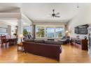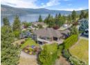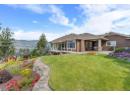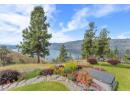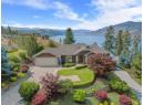 Welcome to The Pointe, an exclusive and tranquil community just north of Lakestone in Okanagan Centre. Capturing breathtaking south-western lake views, this 3,365 Sq.Ft. walkout rancher offers an exceptional blend of serenity, elegance and indoor–outdoor living. Set within a perfectly manicured lot, the property is a true private retreat complete with impressive rock walls, handcrafted staircases and a fully fenced back yard with hot tub, soothing water feature and an expansive covered patio, perfect for relaxing afternoons or sunset gatherings. The main level features a bright open-concept dining and living space with vaulted ceilings, anchored by a gas fireplace framed in stone with a rich wood mantle. Solid oak hardwood floors extend throughout, complementing the chef’s kitchen equipped with granite countertops, gas cooking and an adjacent prep area perfect for hosting with ease. A generous skylit foyer leads to two beautifully appointed bedrooms on this level, including the primary suite. The ensuite showcases a two-way fireplace, soaker tub, heated floors and spacious walk-in closet with direct access to the laundry room. A walkout basement with expansive windows seamlessly connects the interior to the outdoor oasis. A large recreation area with wet bar offers the perfect setting for entertaining, while a sound-proofed media room and temperature-controlled wine storage enhances the home’s sophisticated amenities. An office or additional bedroom provides a welcoming space for guests, complemented by a versatile den ideal for use as a massage or fitness room. Car enthusiasts will value the storage: a 220V double garage, plus a second single garage and workshop with its own driveway, and fully serviced RV site. Meticulously maintained and move-in ready, recent upgrades include a high-efficiency furnace, hot water tank and new roof. Minutes from award-winning wineries, boat launch and public beach, this remarkable property offers an unparalleled Okanagan lifestyle. (id:56537)